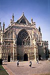 El edificio también aparentará estar inclinado hacia atrás. (Compara la primera fotografía de arriba tomada con un lente gran angular, con la segunda, tomada con un lente de distancia focal normal.)