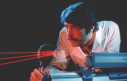 luz roja de la escena de color es separada (al ser reflejada en un filtro-espejo