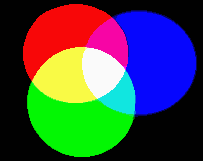 cuando los colores aditivos primarios (luz roja, azul y verde) son mezclados