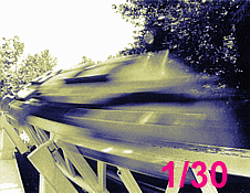 Al igual que en la fotografía, en algunas cámaras de video es posible exponer en rangos menores de 1/60. Esto permite a la luz afectar al CCD durante mas tiempo del establecido para el barrido normal. En este proceso algunos campos y cuadros son omitidos en intervalos regulares. Si no existe acción en la escena, la perdida de cuadros no será notada, en el caso contrario, al existir movimiento la perdida de cuadros resulta en una acción espasmódica y discontínua, en un efecto estroboscópico. Además del (a veces cuestionable) efecto especial resultante, hay ocasiones, especialmente en condiciones de iluminación deficiente donde una imagen imperfecta es preferible a no tener ninguna imagen. Cambiando al extremo contrario del rango de velocidad, cuando son usadas velocidades mas rápidas que 1/250 de segundo, la acción es claramente congelada en imágenes , nítidas y definidas. Al eliminarse el ligero efecto borroso (motion blur) que permite la transición suave entre cuadros sucesivos podemos notar un sutil efecto estroboscópico cuando vemos acción rápida. Aún así la principal cualidad de la velocidad de toma alta es hacer las imágenes mas claras especialmente en reproducciones en "cámara lenta". Para observar la diferencia que la velocidad de toma puede sobre la acción, observe la siguiente secuencia de fotografías. La primera fue tomada a 1/60, la segunda a 1/250, la tercera a 1/500 y la última a 1/1000.