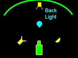 El Contraluz (a veces llamado luz del cabello) debe ubicarse directamente detrás del sujeto con relación a la cámara de close-up. Desde una vista superior usted debería