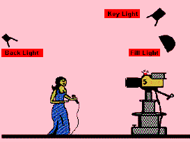 Una buena opción para una luz de relleno de estudio es una ponchera (scoop) grande, o un banco de luces fluorescentes balanceadas a 3.200. En locación estas opciones son muchas veces imprácticas, por lo tanto puede utilizarse una lámpara de cuarzo portátil con un difusor. El difusor no sólo suaviza la luz de relleno, sino que puede reducir su intensidad has el nivel adecuado. (Explicaremos la intensidad relativa de cada una de las luces en el próximo módulo.)