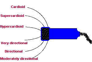 forma de un corazón. Los cardioides son sensibles a los estímulos sonoros en un rango amplio al frente del micrófono, pero relativamente insensibles a los sonidos detrás del mismo. Aunque este patrón puede ser muy util para sonorizar un coro en un estudio, la amplitud de la zona de sensibilidad del cardioide es sigue siendo demasiada para muchas las aplicaciones en TV. por ejemplo, cuando se encuentra colocado a 2 o más metros del locutor puede registrar sonidos incidentales no deseados, incluyento la reverberación de las paredes. Sin embargo este tipo de micrófonos son útiles en micrófonos de mano y cuando los micrófonos pueden estar cerca del talento (cantantes, presentadores, etc.)